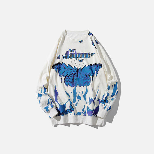 Butterfly Blue Flames Print Sweatshirt