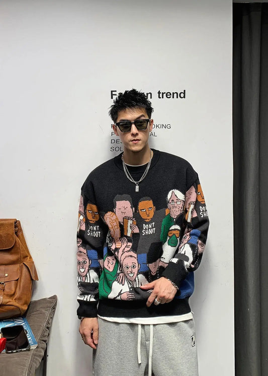 İNDİRİM 47%Cozy Patchwork Rabbit O Neck Sweater