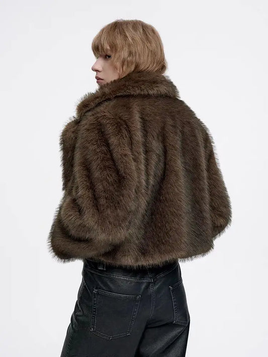 Cozy Vintage Brown Plush Hooded Puffer Sweatshirt