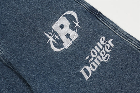 Ethnic Style Spliced Denim Jacquard Casual Loose Jacket