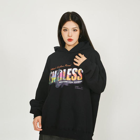 İNDİRİM 22%Embroidery Letter Loose Hoodie