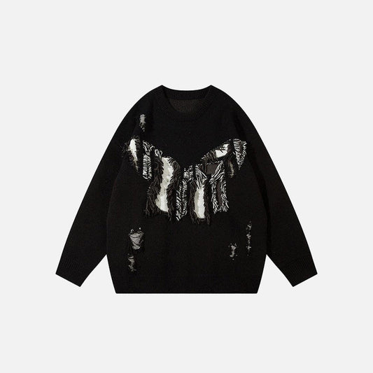 İNDİRİM 22%Embroidery Butterfly Ripped Sweater