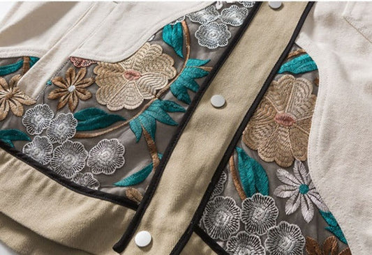 İNDİRİM 20%Floral Embroidered Round Neck Cardigan
