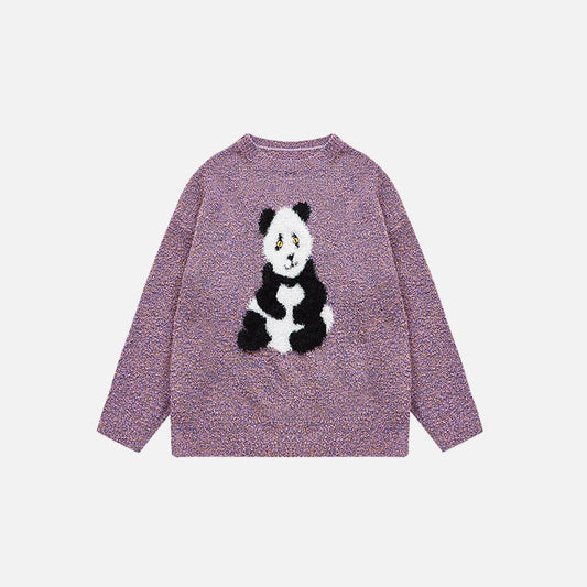 İNDİRİM 40%Loose Panda Knitted Fuzzy Sweater