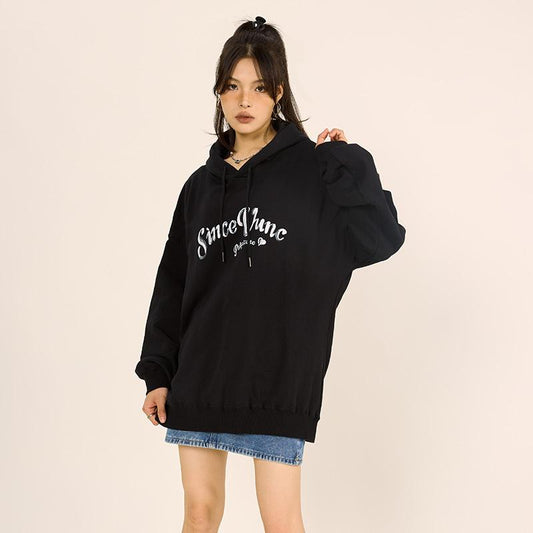 Oversized Vintage Black White Zip-Up Sweatshirt