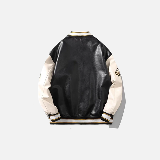 PU Leather Embroidered Letter Baseball Bomber Jacket