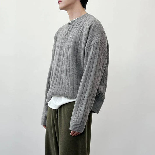 İNDİRİM 27%Premium Casual Henley Cable Knit Sweater