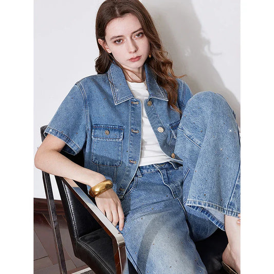 Rhinestone Short Sleeve Denim Jacket