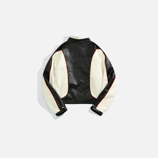 Stylish Contrast Color Spliced Motorcycle Leather Jacket