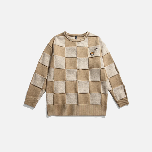 İNDİRİM 30%Vintage Chess Square Sweater
