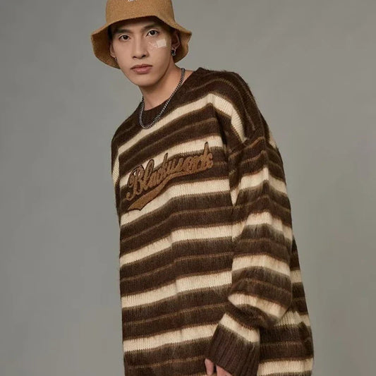 İNDİRİM 29%Vintage American Style Striped Knitted Sweater
