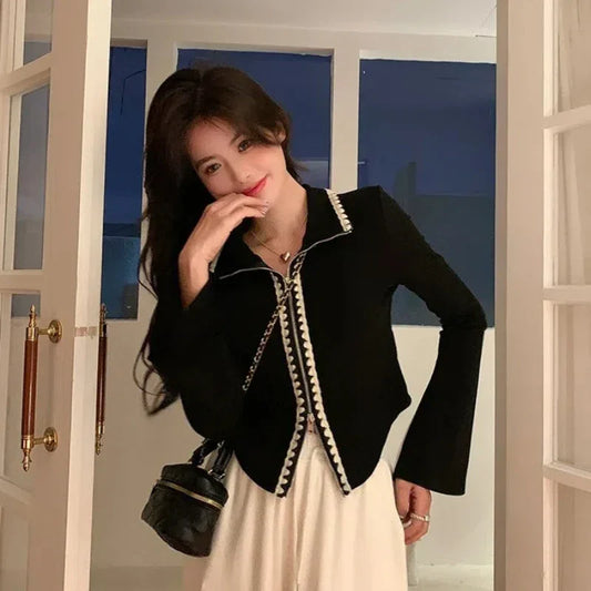 Women Casual Ethereal Spring Knit Zipper Cardigan