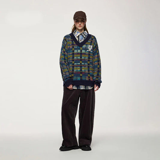 İNDİRİM 38%Checkered Graphic Knitted Sweater