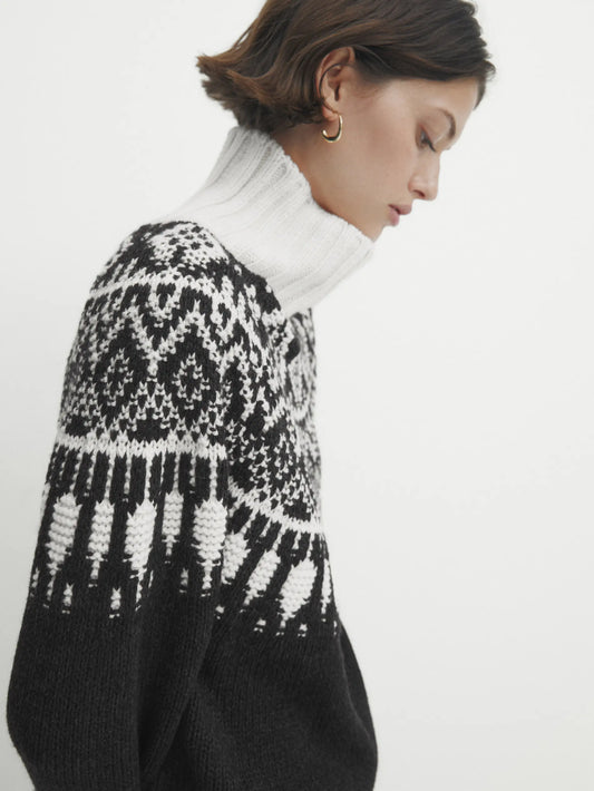 Classic Ethereal Spring Style Jacquard Turtleneck Sweater