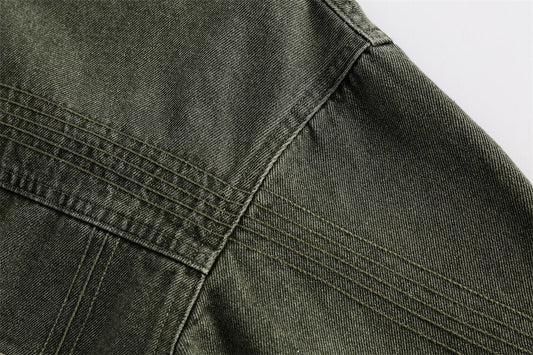 Vintage Green Letter Washed Denim Jacket