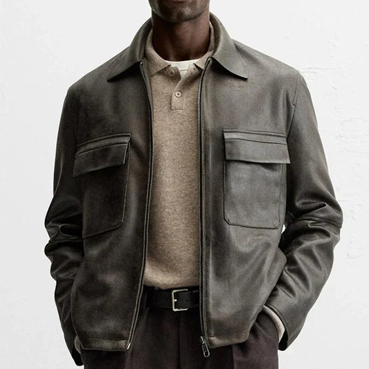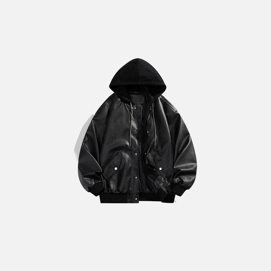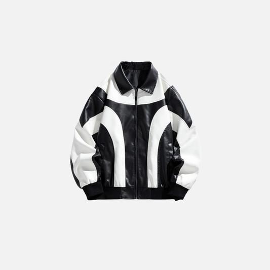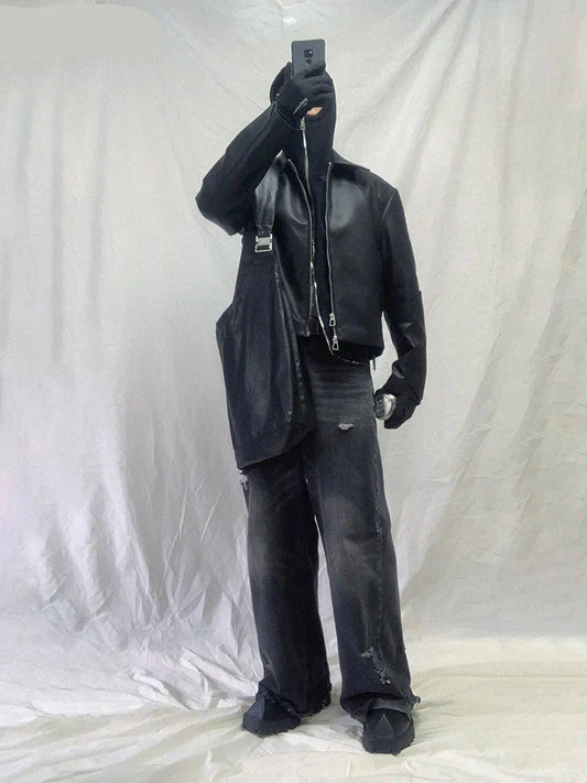 Black PU Windbreaker Coat Zipper Leather Jacket