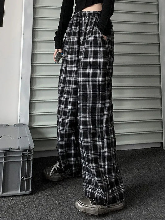 İNDİRİM 24%Black Plaid Oversized Sweatpants