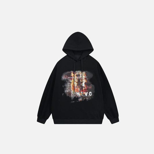 Burning Building Graphic Hoodie