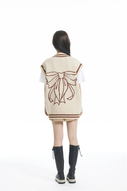 İNDİRİM 39%Cozy Chill Season Bow Print Long Sleeve Sweater